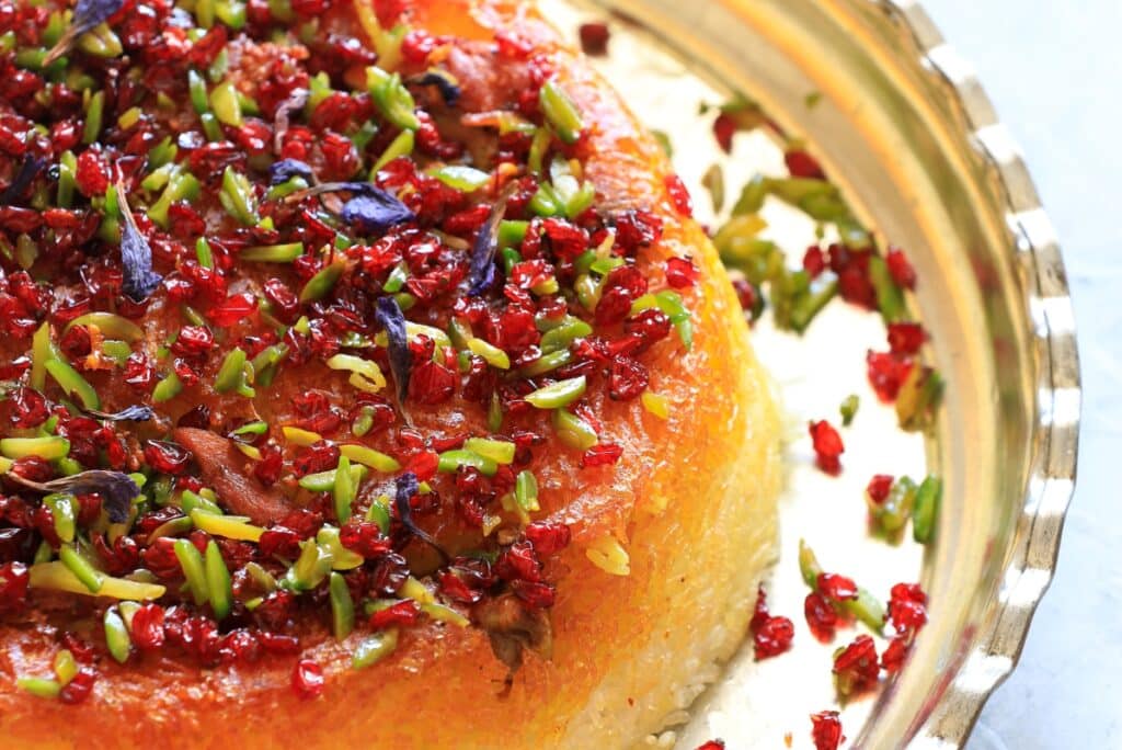 Now that the food is ready, let me tell you that it makes a magical combination with barberry and pistachio slices! Fry these two delicious with a spoonful of sugar, saffron and butter and decorate the food.