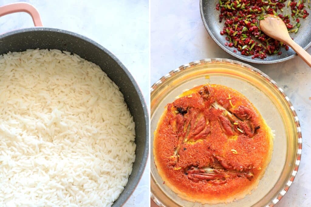 For us, the bottom of the pot is an important part of the food. As much as many of us like and eat bottom of the pot, we don’t touch the main food and somehow we fill ourselves with it! Especially if it is saffrony and roasted, and its thickness and color are mind blowing! Now imagine a dish that has “saffron chicken” in the bottom of the pot… this great dish is called “Tah Andaaz”!