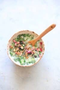 Ancient medical texts even mention this dish as a remedy for heat and imbalances in the body’s temperament. It likely started as a humble drink, but eventually, with the addition of walnuts, raisins, dried rose petals, and more, it evolved into a complete, filling meal.