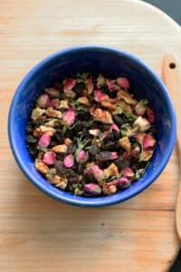 Not in the mood to shop for each ingredient or guess the right proportions? No problem. Tavazo’s Ab Doogh Khiar Blend has you covered. It’s an expertly crafted mix of dried rose petals, walnuts, raisins, and a special selection of aromatic herbs. The result? A colorful, fragrant, and flavorful combo that tastes like it came straight from your grandmother’s kitchen.