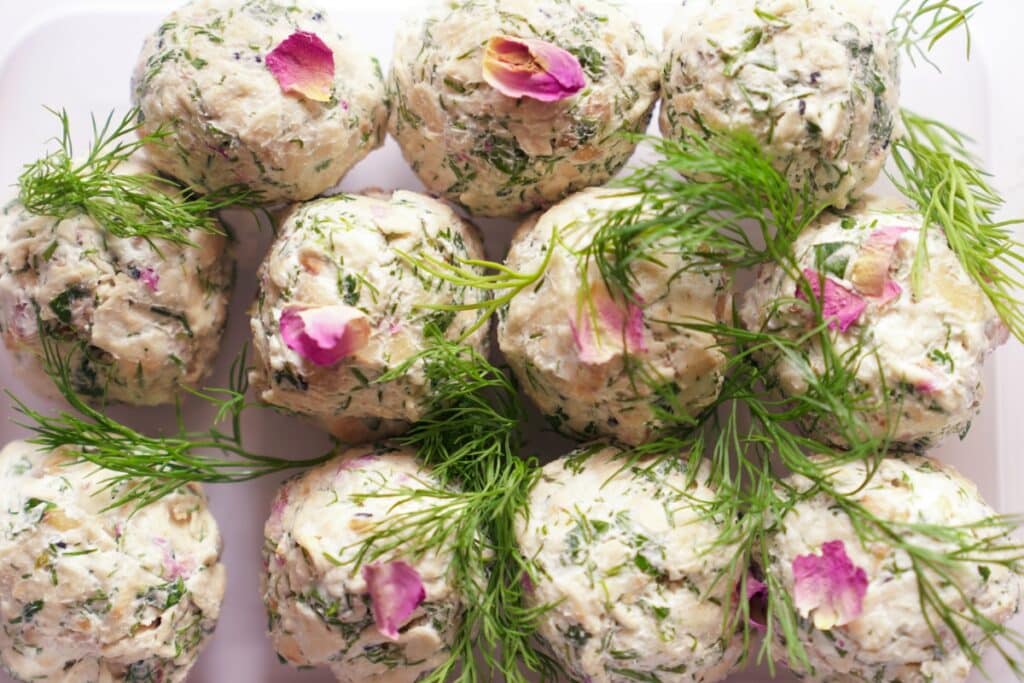 - Finely chop the herbs and add them to the crushed bread along with nigella seeds, cumin, and dried rose petals.