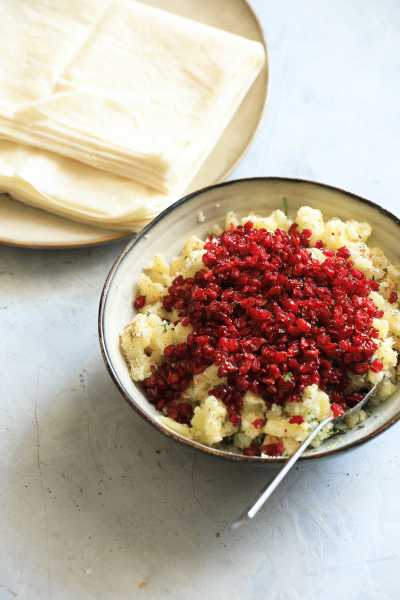 یه پیمونه زرشک، سبزی های معطر و ادویه سمبوسه تواضع رو بهش اضافه کنید. همه مواد رو با هم مخلوط کنید. نمک و فلفل و ادویه مورد علاقه تون رو هم بهش اضافه کنید.