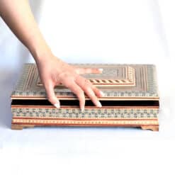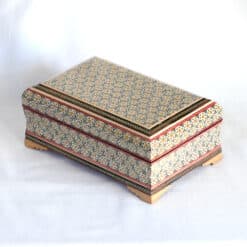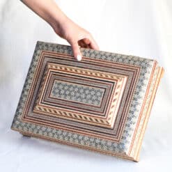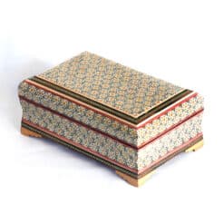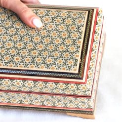 خاتم کاری یه هنر اصیل و ارزشمنده که از کنار هم قرار دادن ورقهای نازک چوب های رنگی، چسبوندنشون کنار هم، برش دادنشون و دوباره چیدنشون توی یه سطح به دست میاد که کلی زمانبره و به همین دلایل هم هنر گرون و بی نظیری محسوب میشه. یه جعبه خاتم کاری سالهای سال توی یه خونه یا یه دفتر کار میتونه بمونه و عضو جدا نشدنیش بشه.