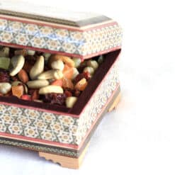 پکیج خاتم با محتوای انواع آجیل های خوشمزه و تازه، درشت و باکیفیت، هدیه ایه که پیشنهاد میکنیم توی مناسبت های خیلی خاص و برای ادمای مهم زندگیتون ببرین و ارزشی که براتون دارن رو یادشون بندازین. با هدیه دادن این جعبه های زیبا هم یه کادوی خوشمزه دادین و هم یه هنر بی نظیر و موندگار رو همراه می برین که سالها نگهش می دارن و با دیدنش یادتون می افتن.